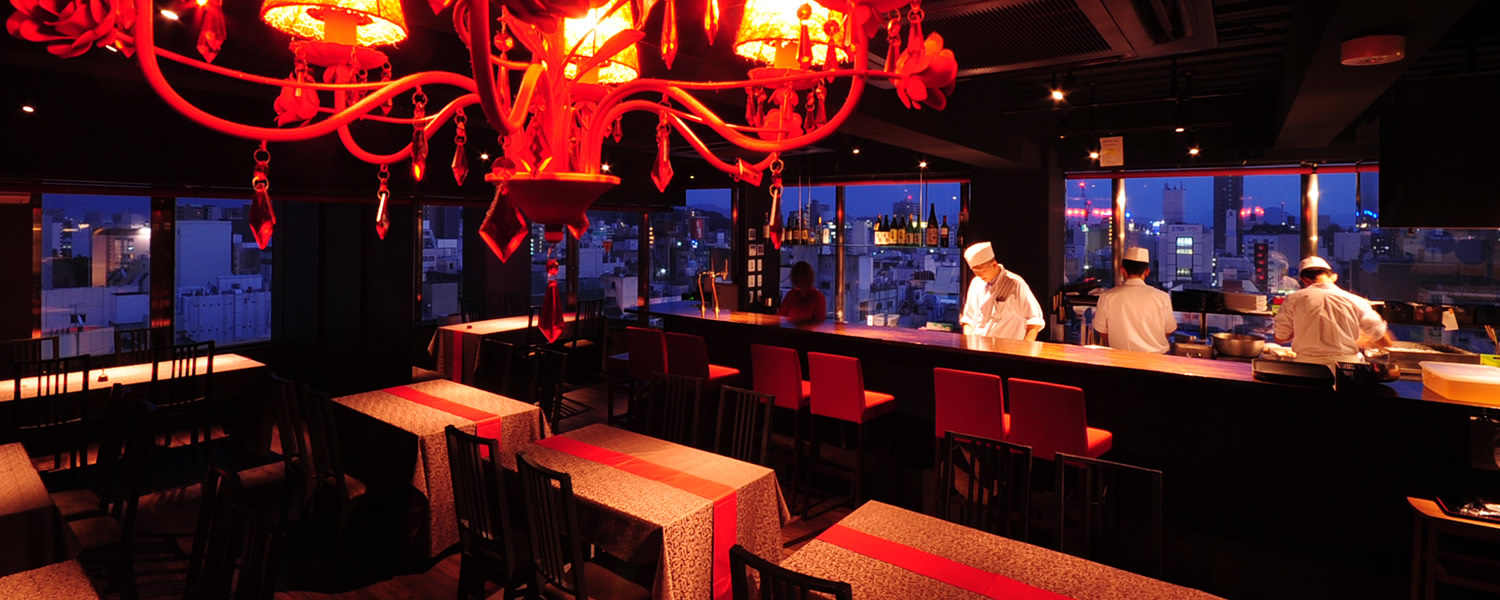 ビル10階から広島市内の夜景を一望しながら、ゆったりとした大人の時間を楽しむ。